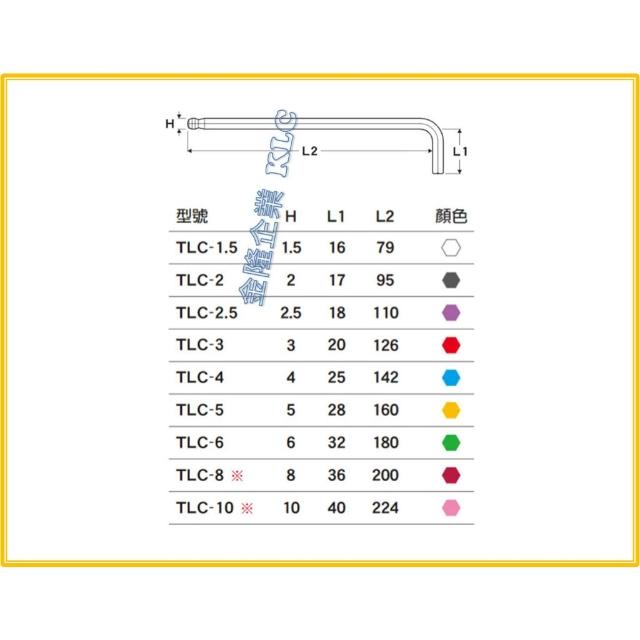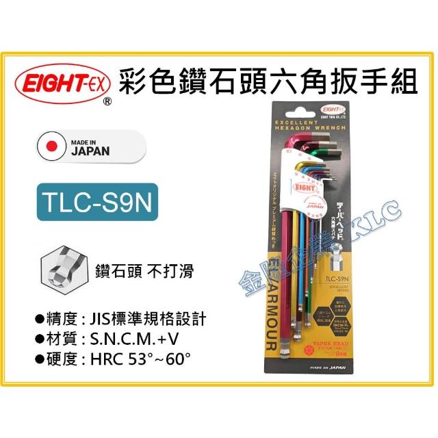 天隆五金日本製 EIGHT 彩色 TLC-S9N 六角板手組 9支組 鑽石頭 六角扳手 內六角板手