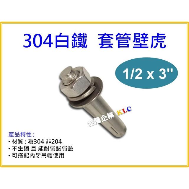 天隆五金304白鐵 套管壁虎 (4分)1/2 x 3" 白鐵膨脹螺絲 台灣製