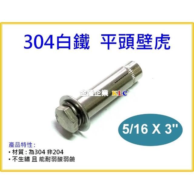 天隆五金304白鐵 平頭壁虎 專利壁虎(2分半)5/16 X 3" 平頭膨脹螺絲 台灣製