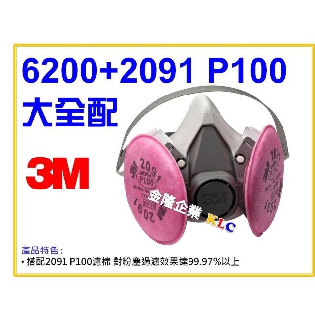 天隆五金 3M 6200+2091 P100 防塵濾棉 大全配 半面式防毒面具 過濾粉塵99.97%