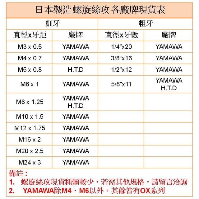 天隆五金(1/8-5/8下單區)日本製 YAMAWA OX 螺旋絲攻 螺絲攻 另有賣絲攻板手