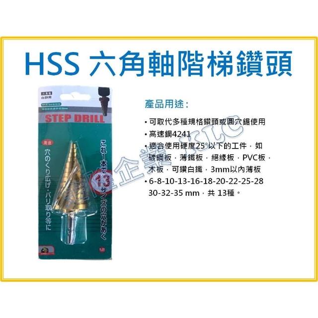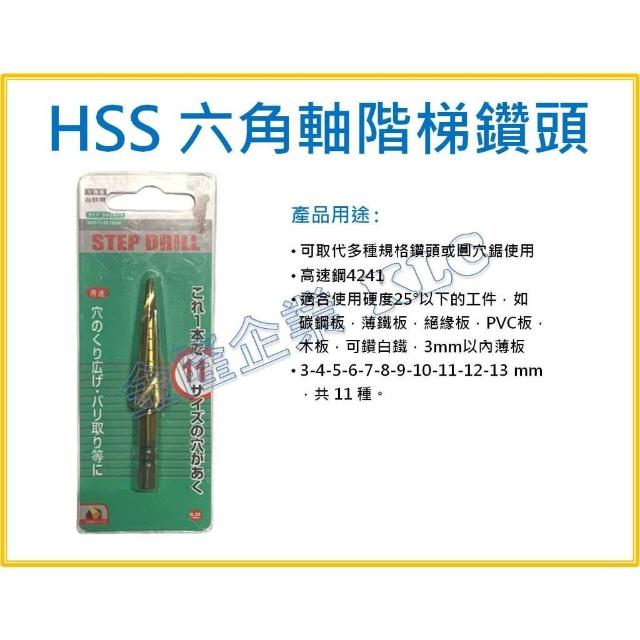 天隆五金 HSS 六角柄 階梯鑽頭 開孔器 白鐵用階梯鑽 鍍鈦螺旋階梯鑽頭 鑽尾 木工鑽 DIY