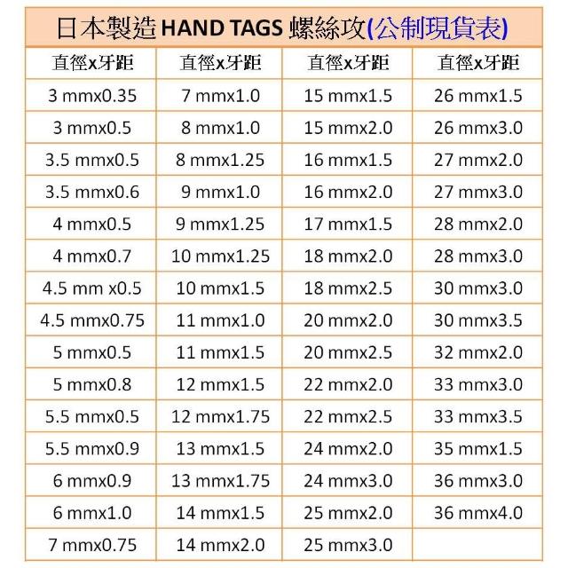 天隆五金 日本製 Hand Taps 螺絲攻 M20(3支組) 手絞絲攻 一般絲攻 螺絲攻牙器