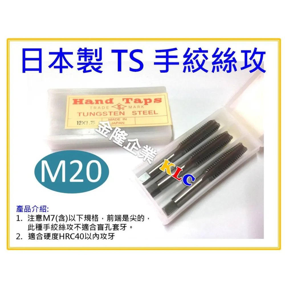 天隆五金 日本製 Hand Taps 螺絲攻 M20(3支組) 手絞絲攻 一般絲攻 螺絲攻牙器