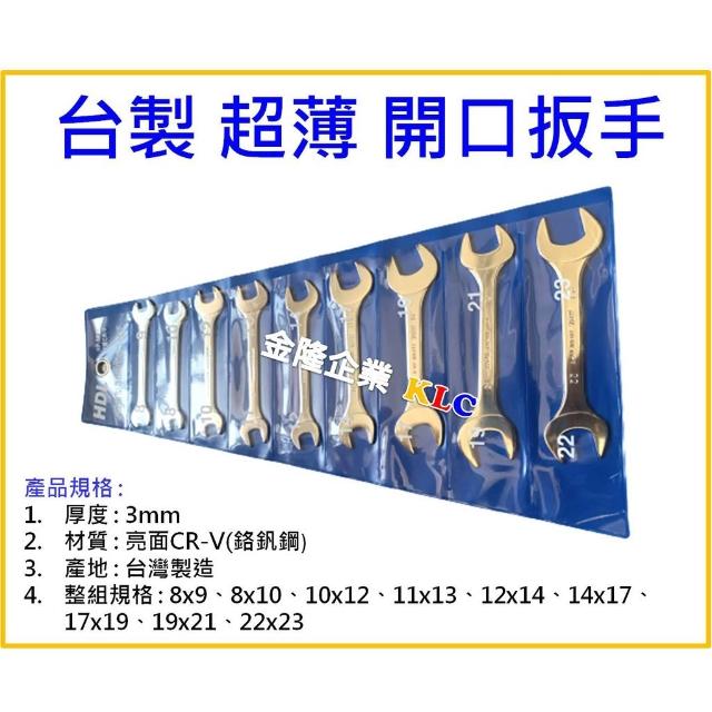 天隆五金 HDL 超薄型開口扳手 單規格 8x9 - 22x23 厚度3mm CR-V材質