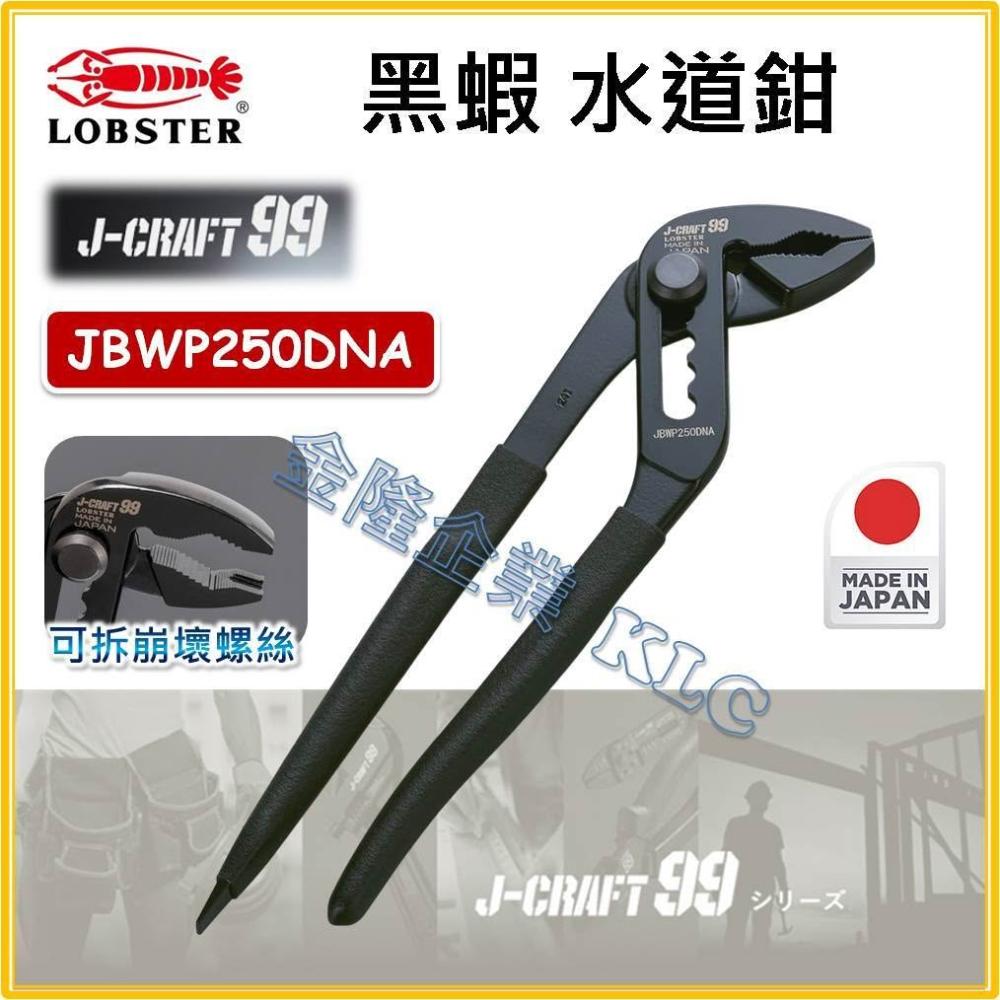 天隆五金日本製 蝦牌 LOBSTER 黑蝦 水道鉗 水管鉗 JBWP250DNA 水泵鉗 鉗子 崩壞螺絲