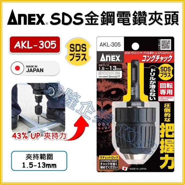 天隆五金 日本製 ANEX SDS Plus 金剛電鑽旋轉夾頭 四溝 AKL-305 電鑽夾頭