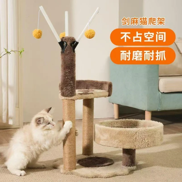[新品熱銷]貓爬架貓窩一體劍麻耐抓不掉屑小戶型清倉特價貓別墅貓樹抓柱用品