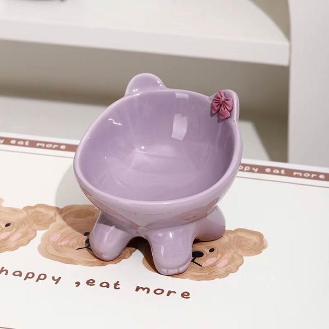 陶瓷貓咪狗狗貓飯碗糧碗護頸斜口水碗高腳可愛寵物貓咪碗防打翻