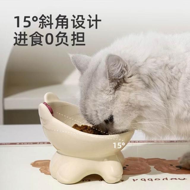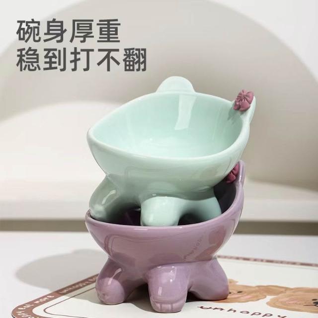 陶瓷貓咪狗狗貓飯碗糧碗護頸斜口水碗高腳可愛寵物貓咪碗防打翻
