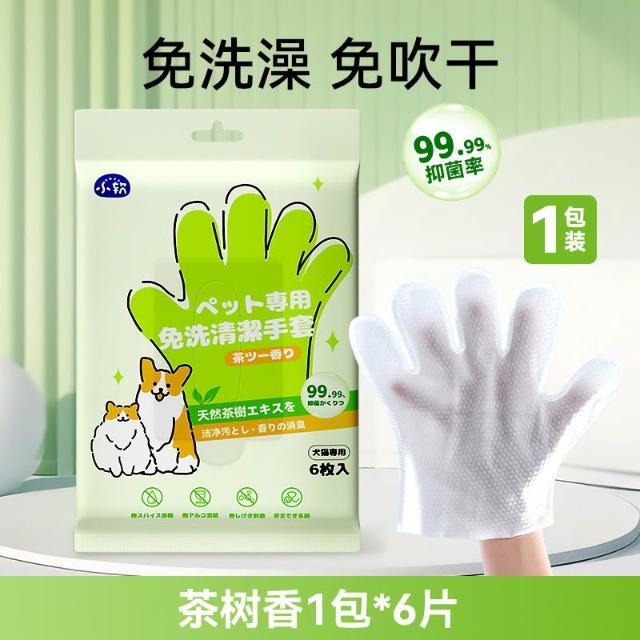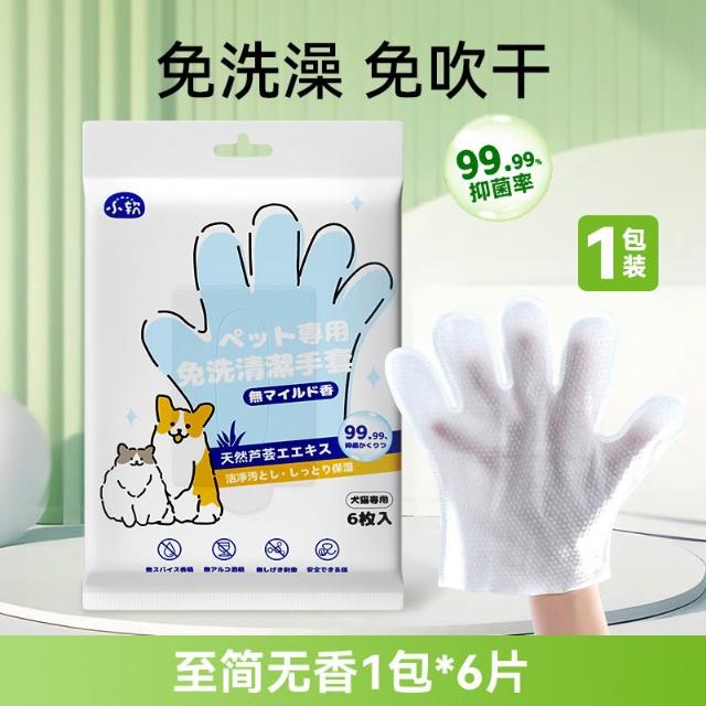 萌寵必備社 hipidog 嬉皮狗 寵物免洗清潔手套狗狗洗澡除臭貓咪幼犬幼貓幹洗清潔濕巾用品6入