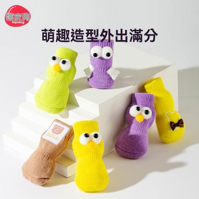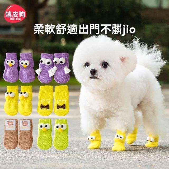 萌寵必備社 hipidog 嬉皮狗 狗狗四季通用襪子可愛大眼萌寵物卡通針織貓咪防滑保暖狗棉襪