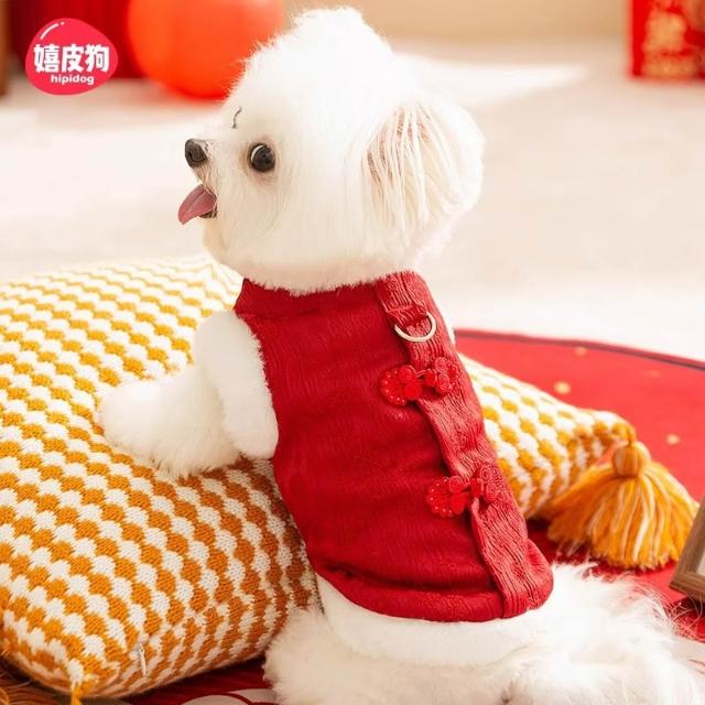 萌寵必備社 hipidog 嬉皮狗秋冬季狗狗新年衣服中式小型犬過年衣服喜慶貓咪棉衣馬甲寵物唐裝