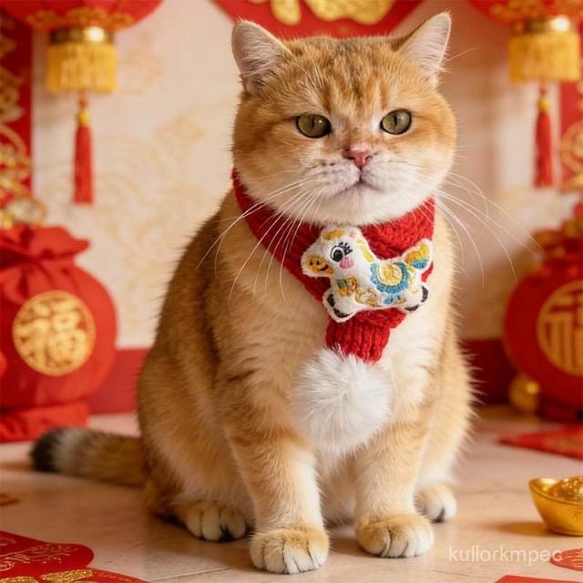 萌寵必備社 馬年寵物圍巾新年貓咪圍脖紅色福小狗狗圍領農厤新春裝扮配飾保暖