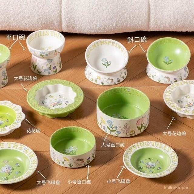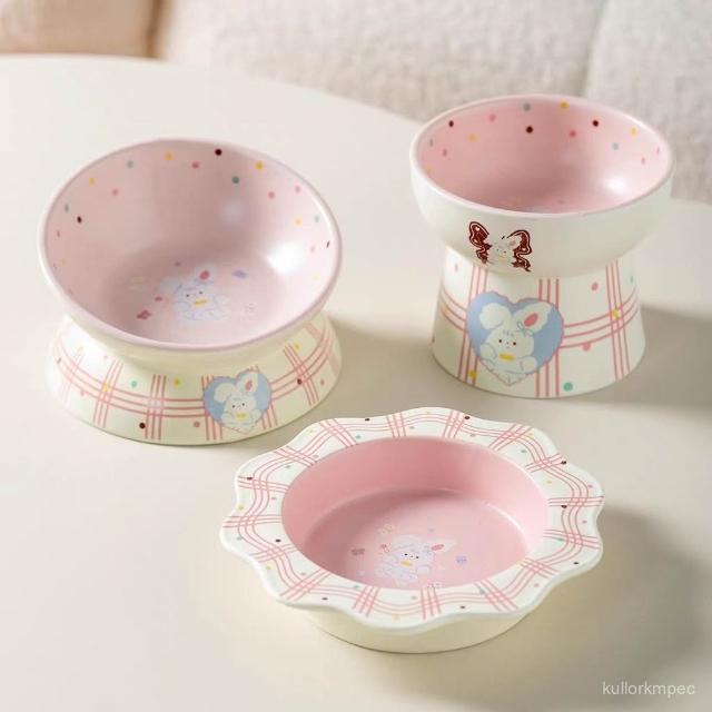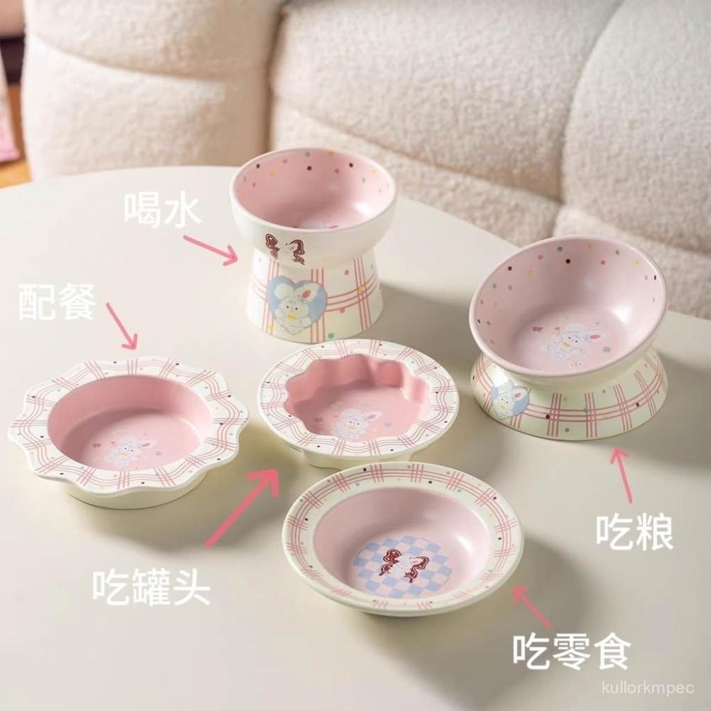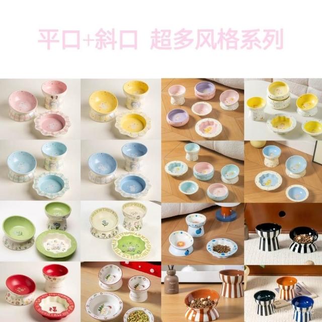 萌寵必備社+爆款貓咪陶瓷飯碗罐頭碗貓碗糧碗寵物零食碗淺口餐盤子貓食盆保護頸椎