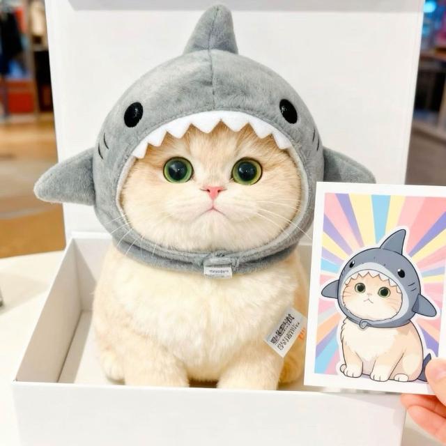萌寵必備社+貓咪帽子鯊魚頭套寵物可愛搞怪毛絨頭飾變裝帽拍照道具創意裝飾品