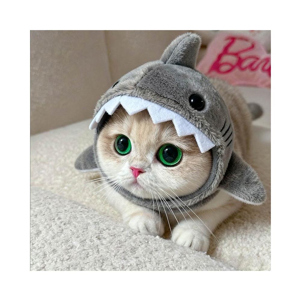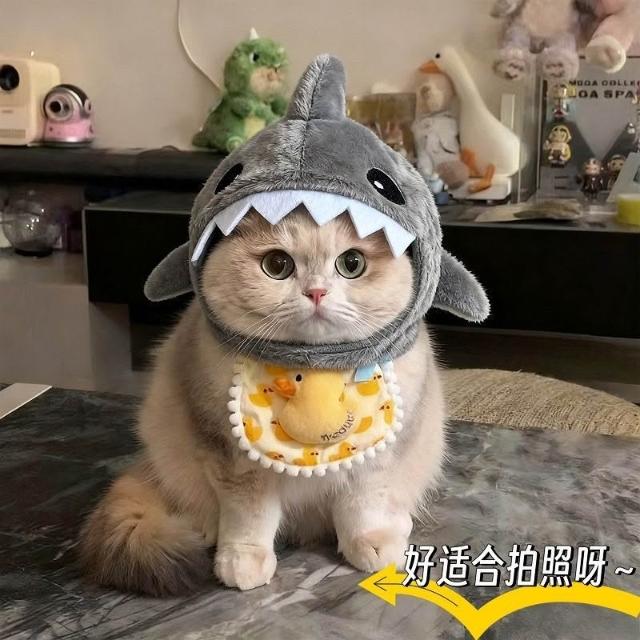 萌寵必備社+貓咪帽子鯊魚頭套寵物可愛搞怪毛絨頭飾變裝帽拍照道具創意裝飾品