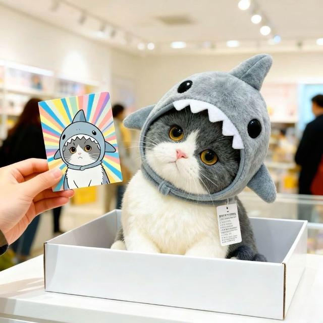 萌寵必備社+貓咪帽子鯊魚頭套寵物可愛搞怪毛絨頭飾變裝帽拍照道具創意裝飾品