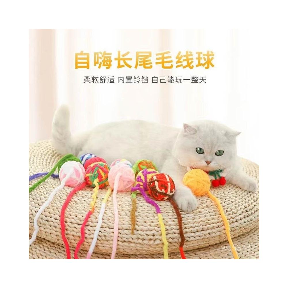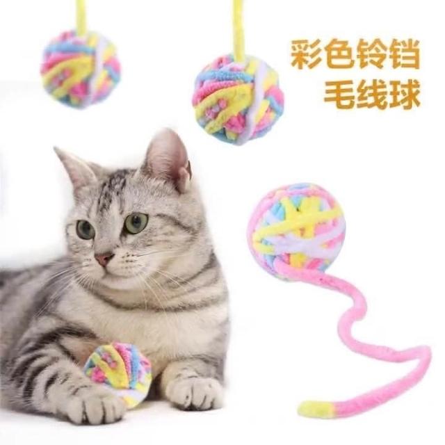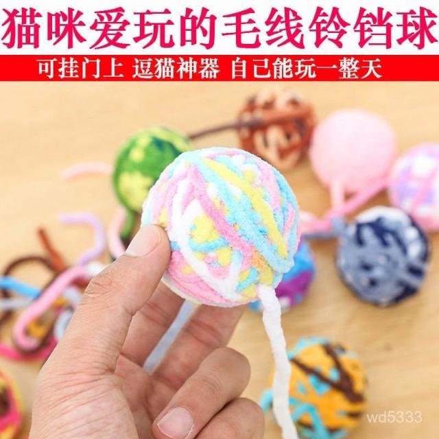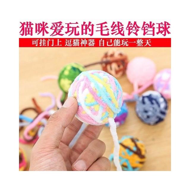 新款毛綫球解悶耐咬小狗貓啃逗貓玩具手工編織鈴鐺球彈力趣味貓咪