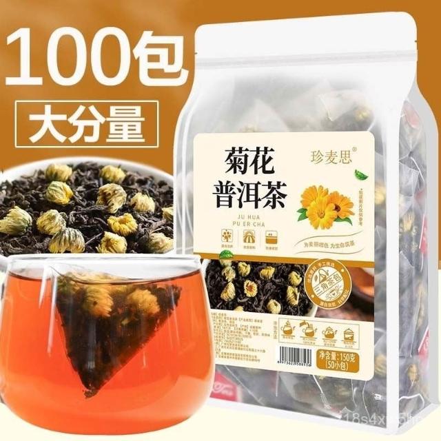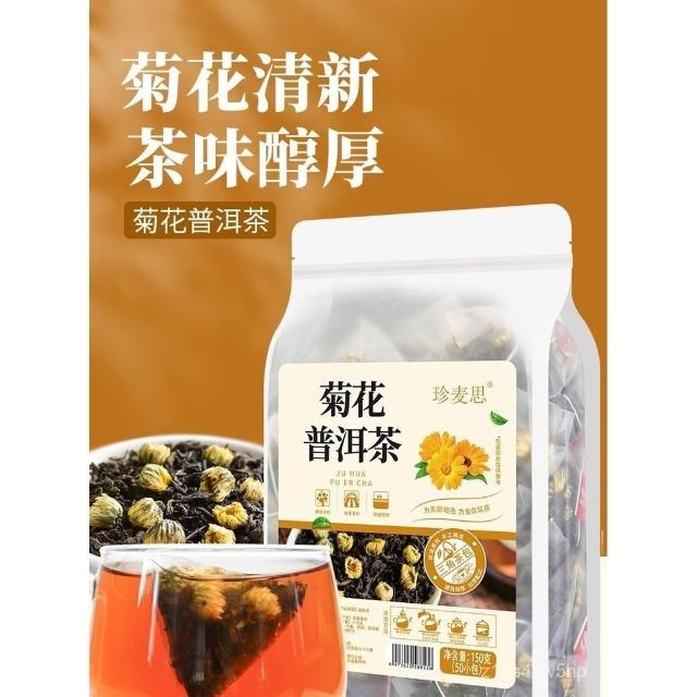 明明甄選 菊花普洱茶三角茶包冰菊普洱熟茶袋泡茶菊花茶組閤菊普茶葉泡水喝