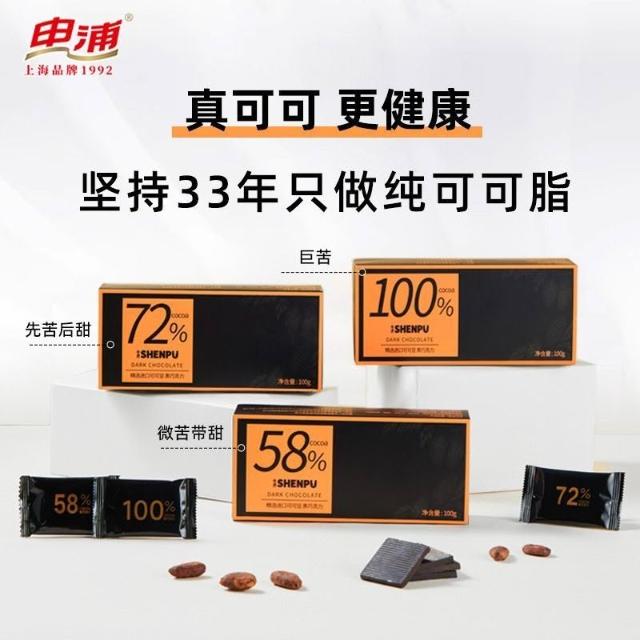 申浦黑巧克力純可可脂100%黑巧獨立包裝100g健身零食