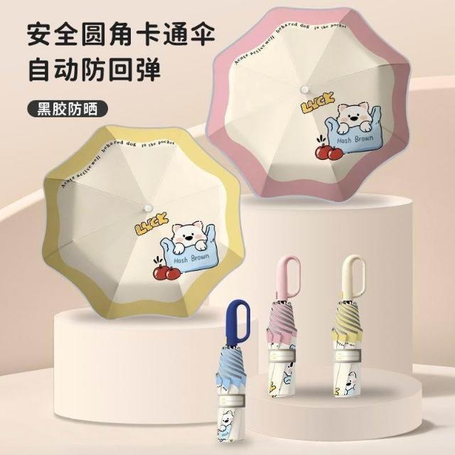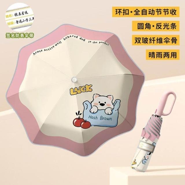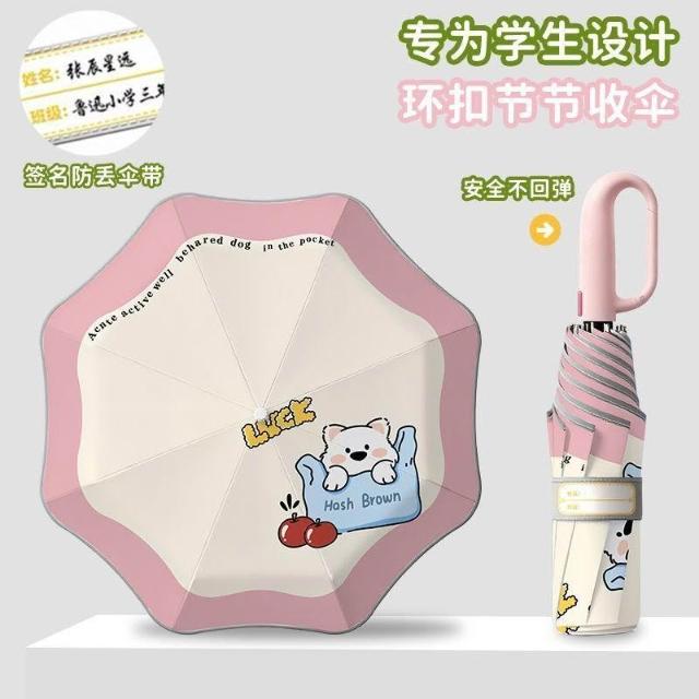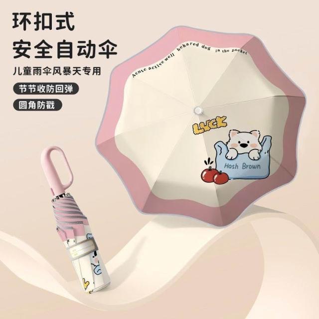 新新甄選環扣全自動兒童雨傘安全圓角防回彈學生上學專用晴雨兩用男女摺疊