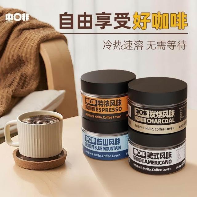 单单優選【中啡】原味速溶罐裝純黑美式炭燒雲南咖啡罐裝低脂咖啡粉