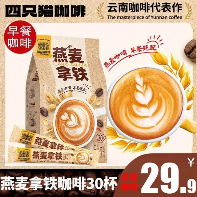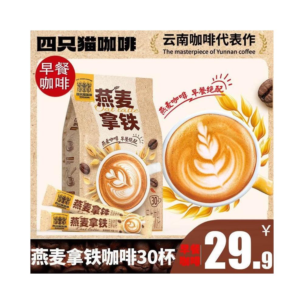 单单優選燕麥拿鐵咖啡30條 四隻貓 三合一 速溶咖啡粉 學生 上班熬夜450g