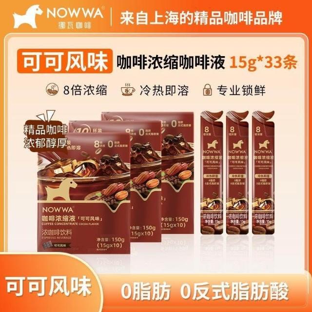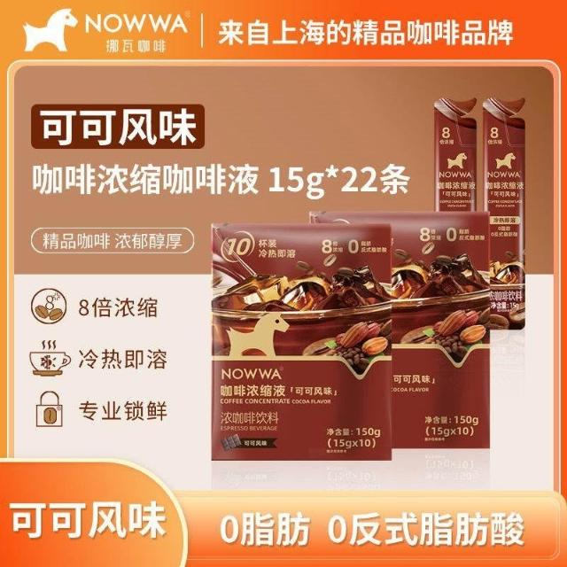 单单優選NOWWA挪瓦可可風味咖啡液裝0脂8倍濃縮液冷熱即溶濃咖啡飲料學生