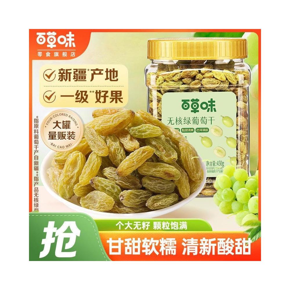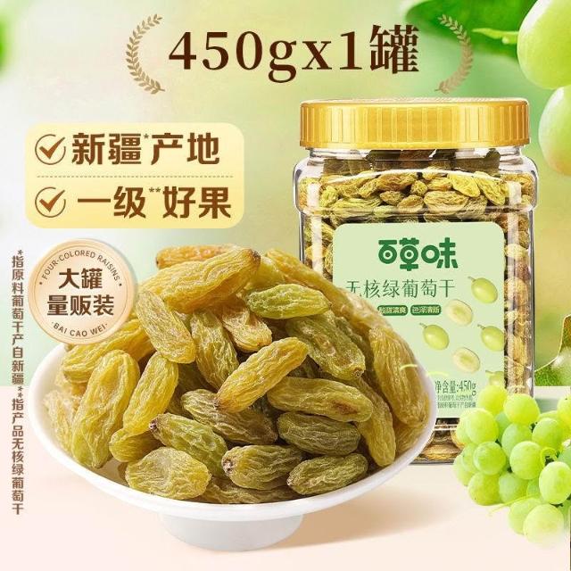 文文優選百草味無核綠葡萄乾450g罐裝新疆特產免洗一級大果乾蜜餞休閒零食
