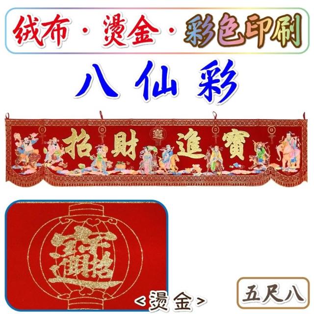 八仙彩【結婚 入宅 安神 開幕 招財進寶 八仙彩 5呎8 絨布 燙金 彩色印刷】