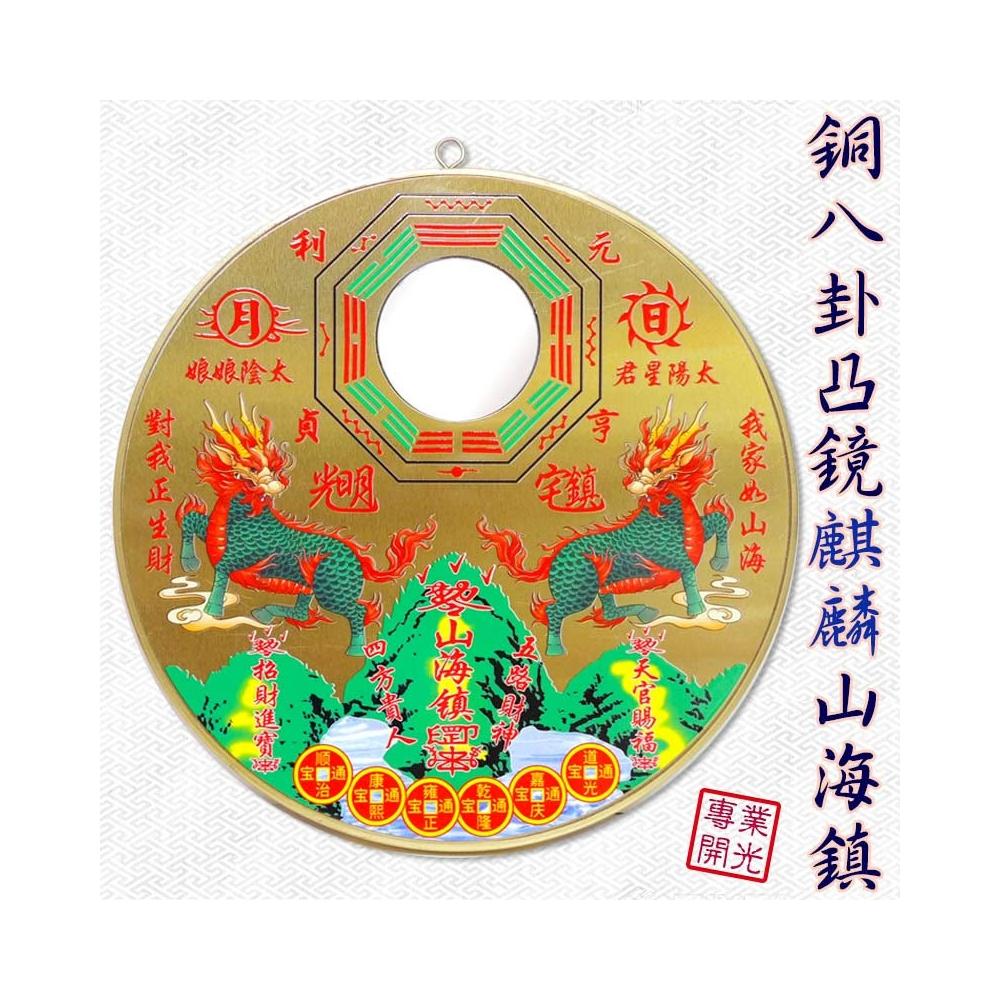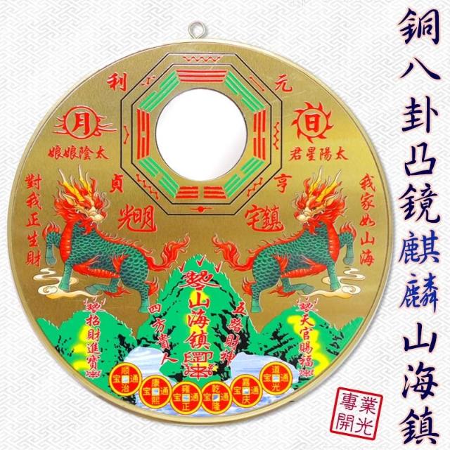 吉祥開運坊吉祥開運坊【圓形銅版八卦凸鏡麒麟山海鎮 化屋外煞氣 有三款可供選擇】開光 擇日
