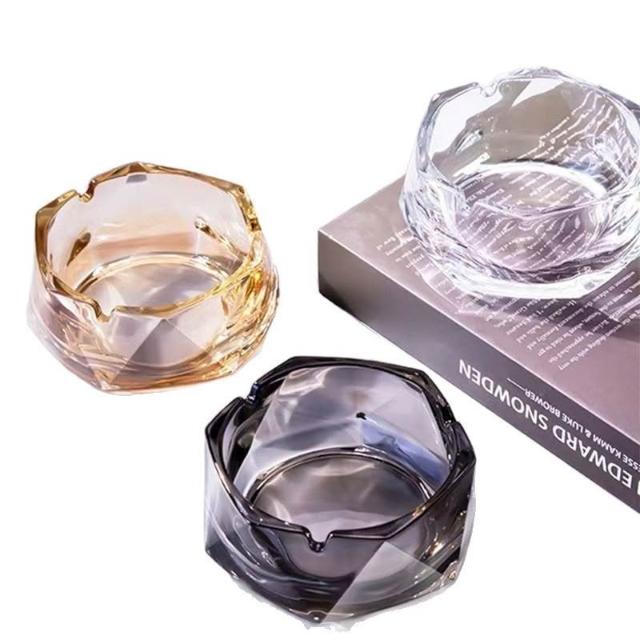 FONMOST加厚水晶煙灰缸 玻璃煙灰缸 水晶菸灰缸 質感菸灰缸 家用煙灰缸 棱形煙灰缸 煙灰色琥珀色煙灰缸