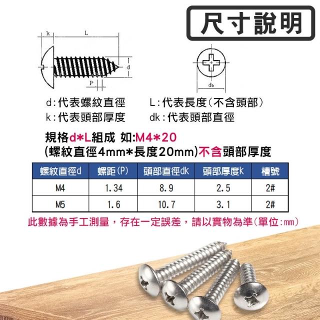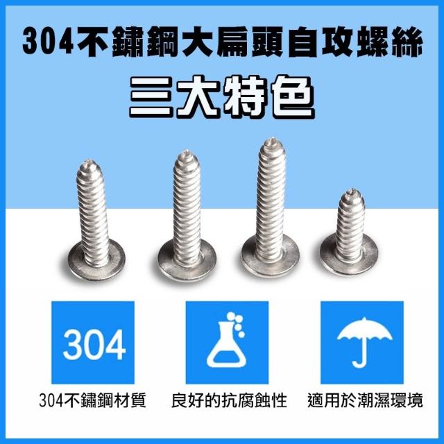 304不鏽鋼大扁頭自攻螺絲 自攻釘 螺絲釘 大扁頭 十字釘 木螺釘 M4 M5不鏽鋼螺絲螺釘