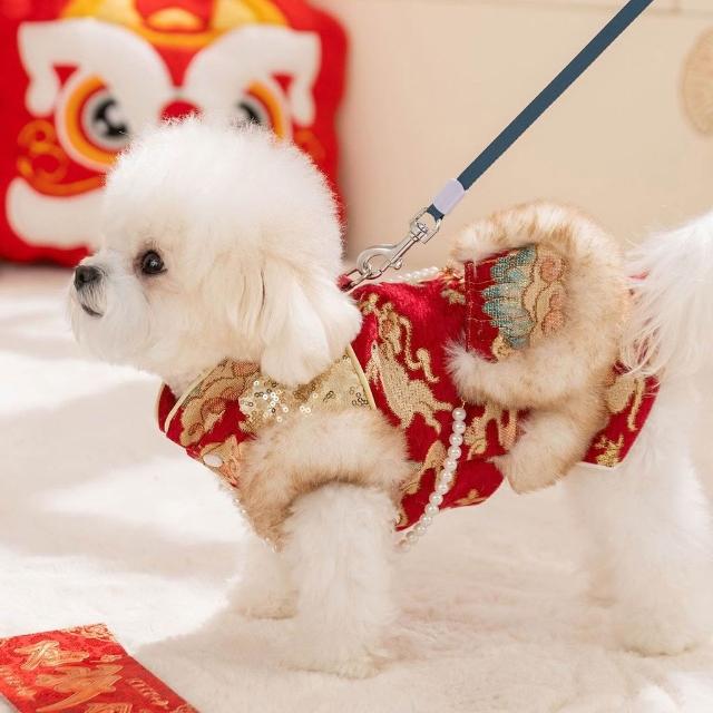 秋冬新年款小狗狗衣服花團錦簇喜慶中式盤扣唐裝小型幼犬寵物裙子