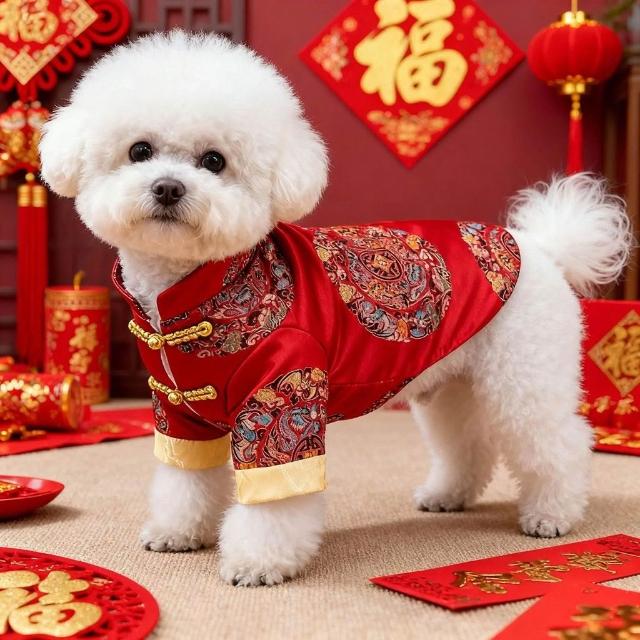 狗狗衣服秋冬款新年唐裝泰迪比熊博美小型犬貓咪過年喜慶寵物棉衣