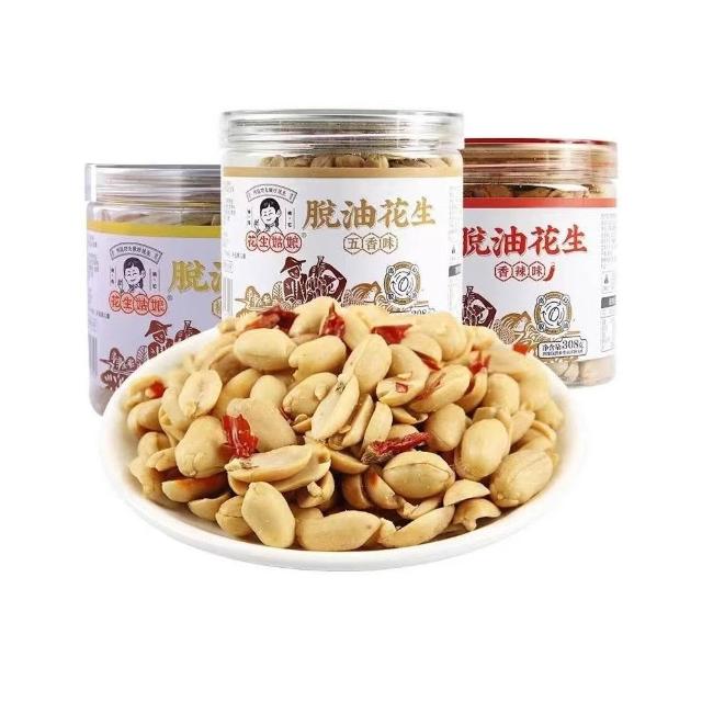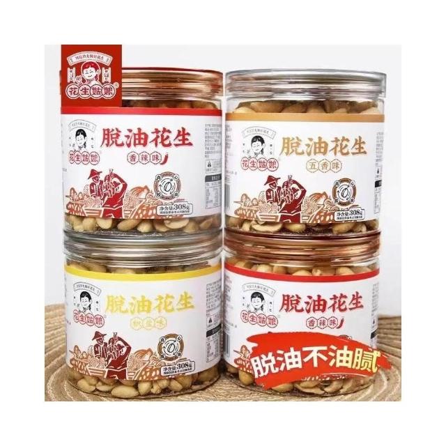 花生姑娘 脫油花生米308g/罐裝 香辣味 五香味 椒鹽味 藤椒味花生米下酒菜休閒零食