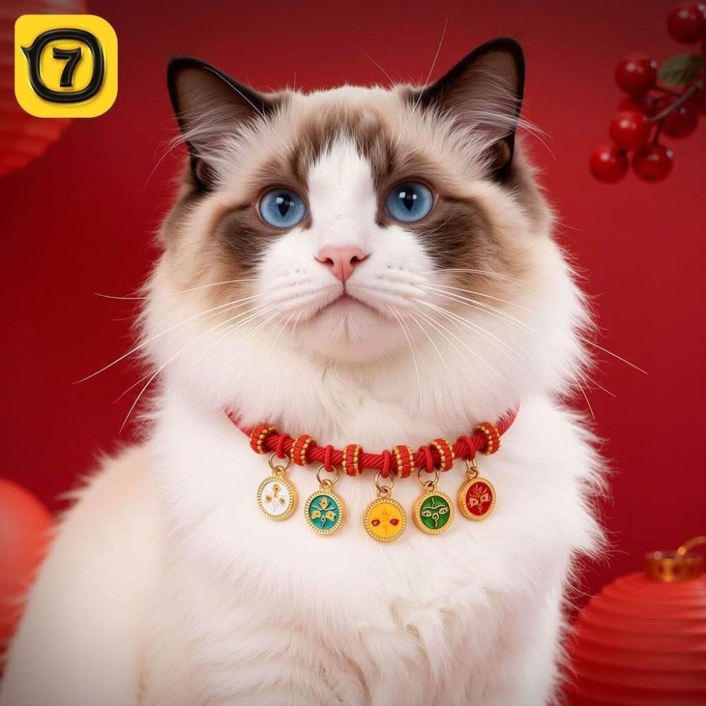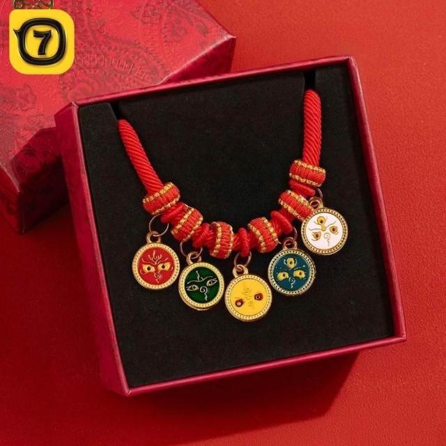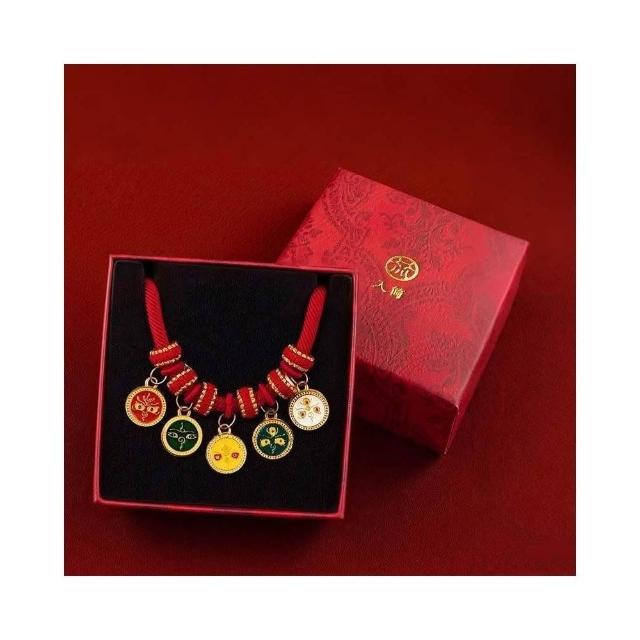 五路財神新年貓咪項圈五福圓滿羅盤小狗項鍊脖圈紅繩無聲裝飾寵物