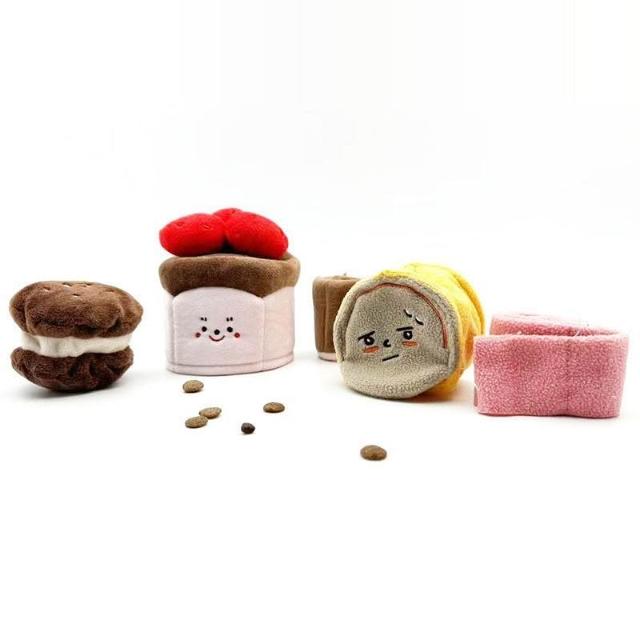 寵物狗狗毛絨漏食玩具草莓蛋糕罐頭餅乾中小型狗狗解悶陪伴互動