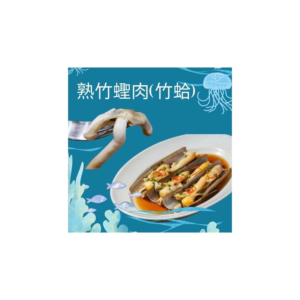 熟竹蟶肉1盒(250克) 竹蛤、竹蟶子肉質細嫩、彈牙,帶有海鮮特有的鮮甜與淡淡鹹香 口感介於花枝與干貝之間 帶點嚼勁