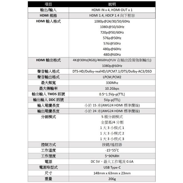 4K 四分割螢幕 分割器 HDMI 畫面 四進一出 1080p HDMI 畫面分割選擇器 4進1出 無縫 切換器