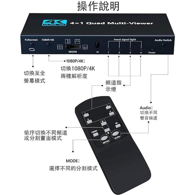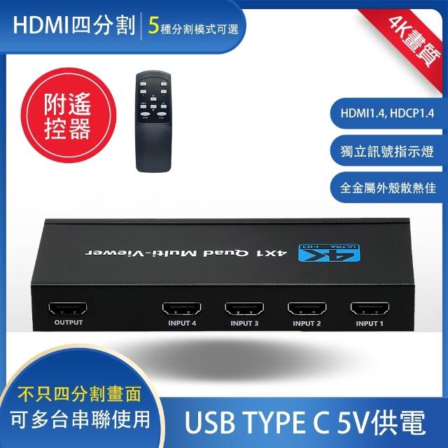4K 四分割螢幕 分割器 HDMI 畫面 四進一出 1080p HDMI 畫面分割選擇器 4進1出 無縫 切換器