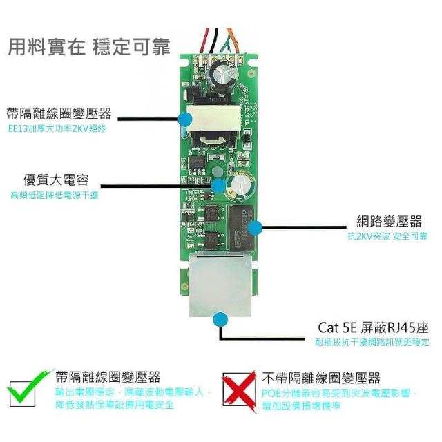 10入 POE 分離器 監視器 隔離型 帶隔離 PD 供電 模組 標準 48V轉12V 可種接頭可選