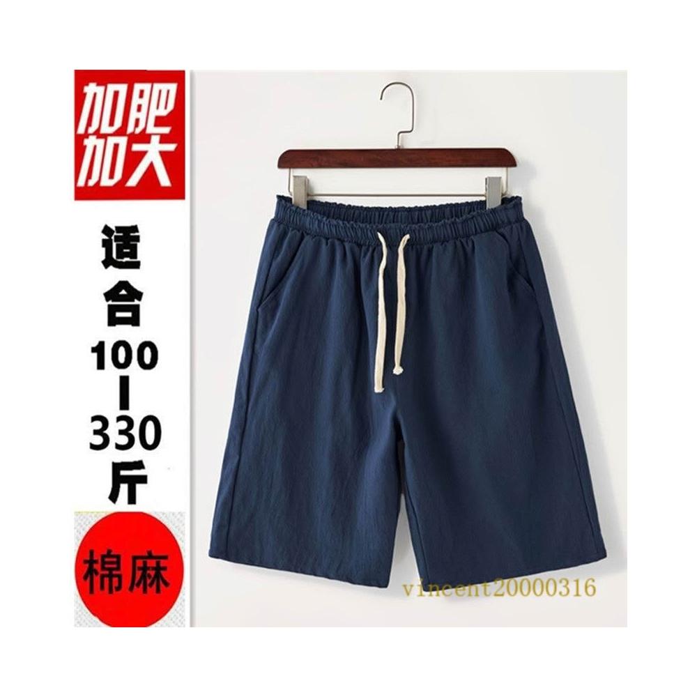 大尺碼短褲 可穿至150公斤 加大碼短褲 大尺碼休閒褲 夏季棉麻加肥加大短褲男大碼寬鬆肥佬中褲夏天胖子吸汗透氣五分褲