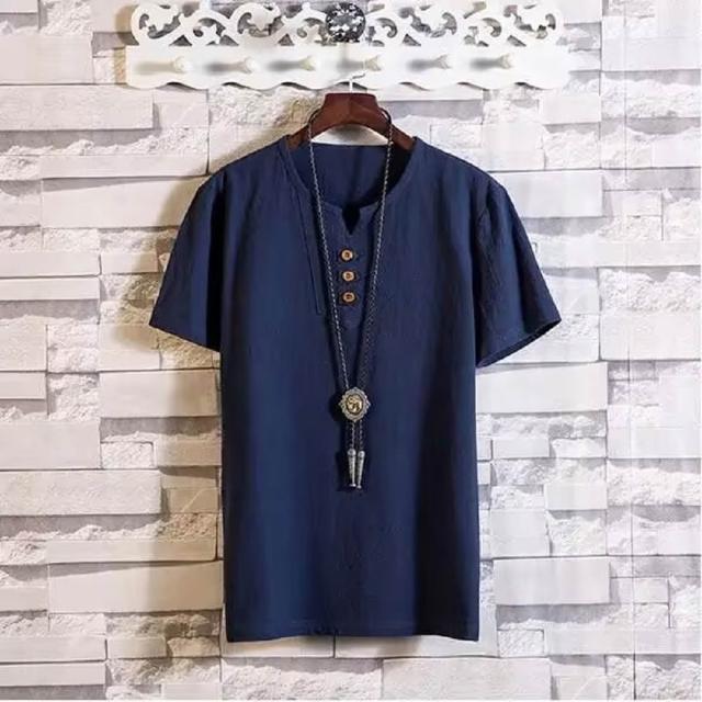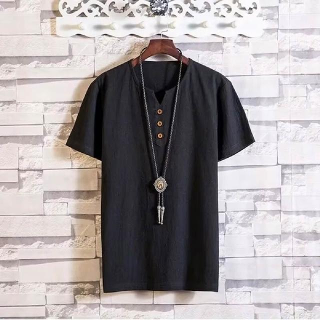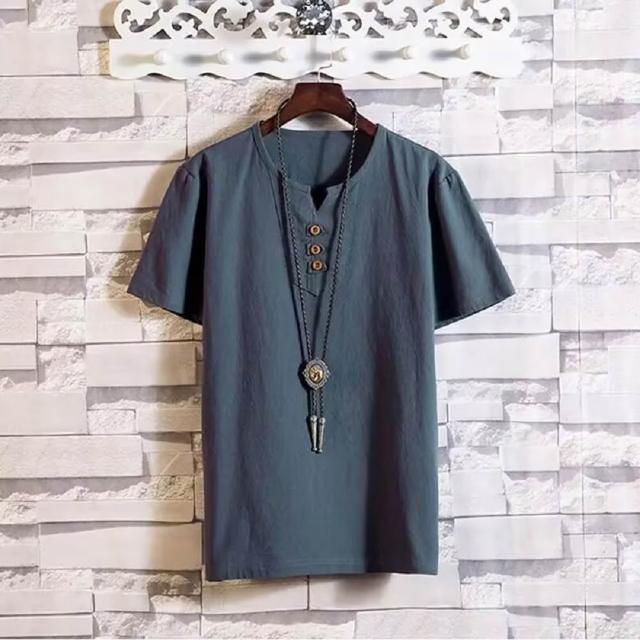 9XL/160公斤大尺碼T恤 超透氣 休閒T恤 寬鬆T恤 亞麻棉麻薄T恤加肥加大碼短袖V領肥佬寬鬆男裝透氣吸汗潮