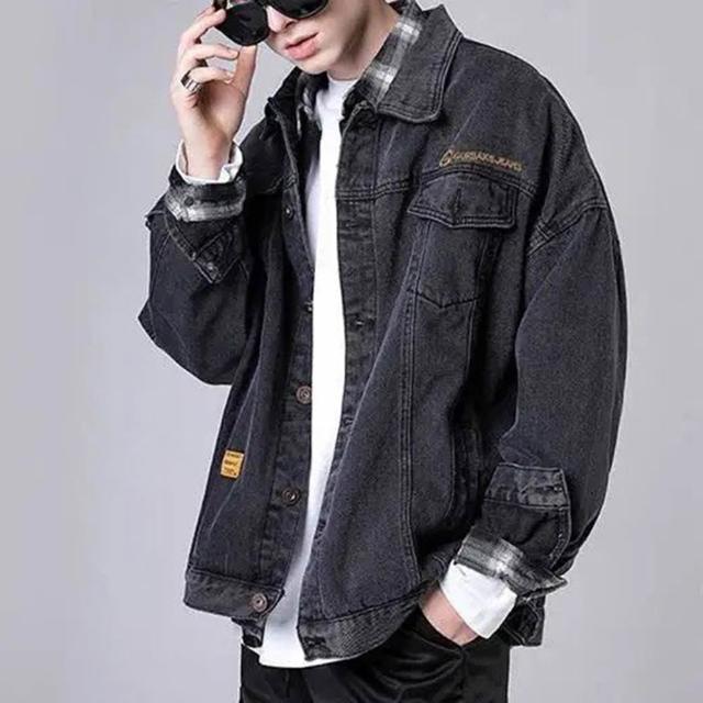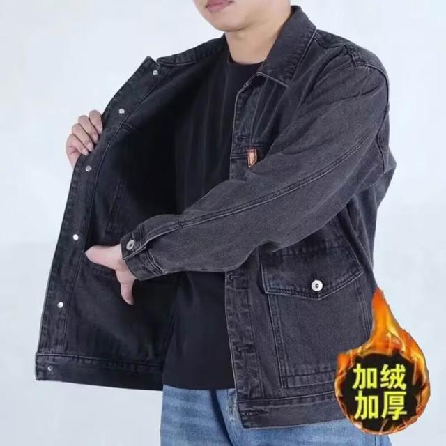 150公斤 大碼牛仔外套男 大尺碼外套 胖子夾克男外套 大尺寸炸街牛仔外套男寬鬆潮牌機能黑色工裝夾剋百搭上衣