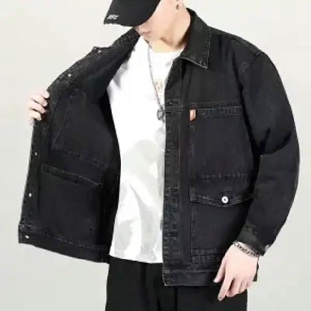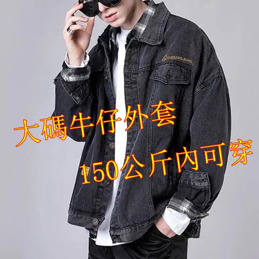 150公斤 大碼牛仔外套男 大尺碼外套 胖子夾克男外套 大尺寸炸街牛仔外套男寬鬆潮牌機能黑色工裝夾剋百搭上衣