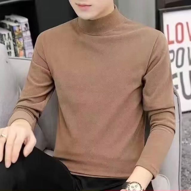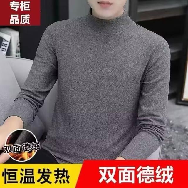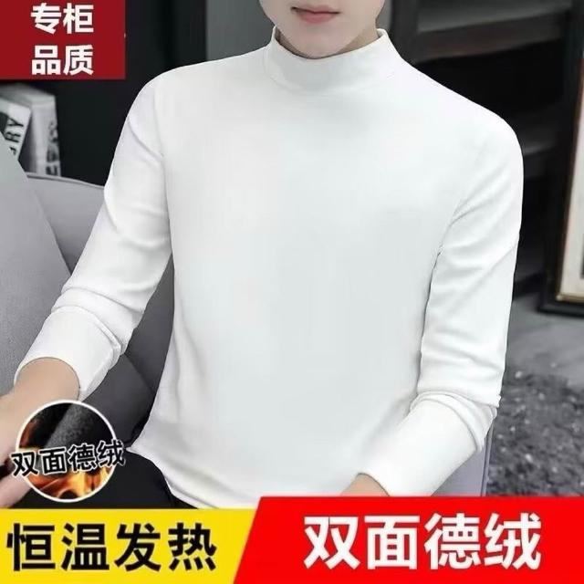 160公斤 大碼男裝 雙面德絨打底衫 長袖保暖上衣 休閒半高領長袖T恤 加肥加大內搭男士半高領純色長袖T恤恆溫保暖內衣