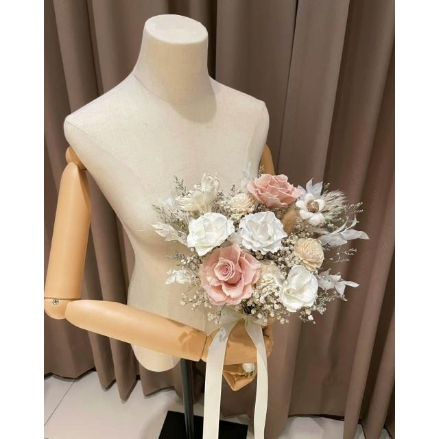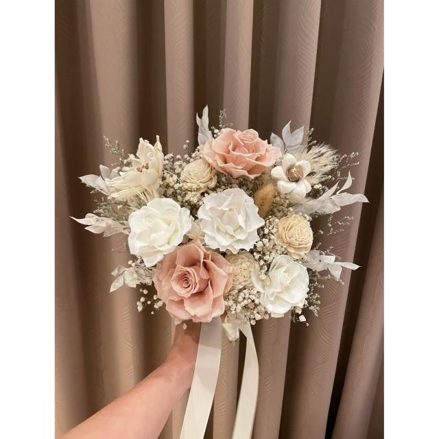 小詩花藝|淺茶色永生捧花 結婚捧花 新娘捧花 登記捧花 乾燥花捧花