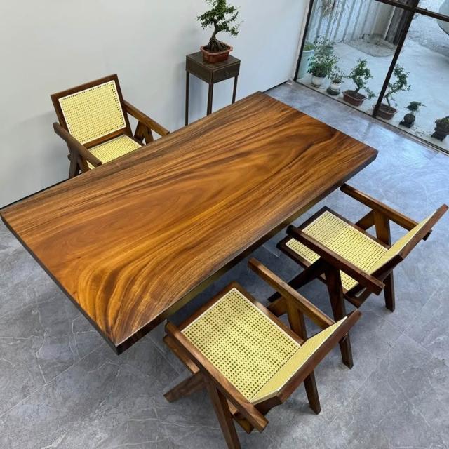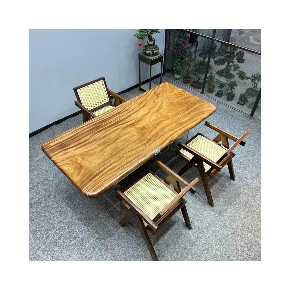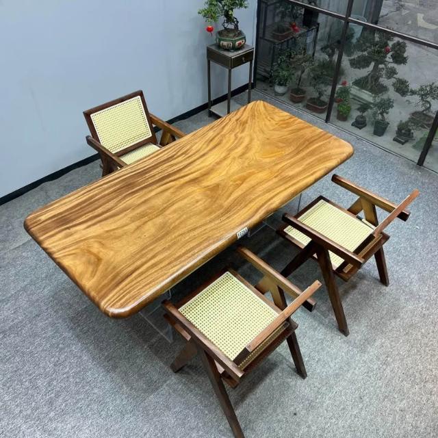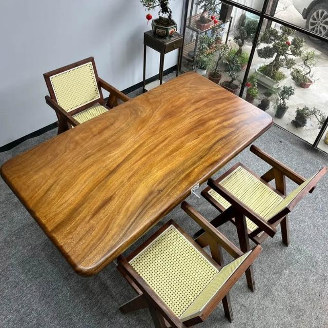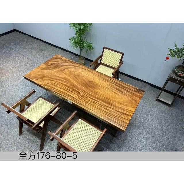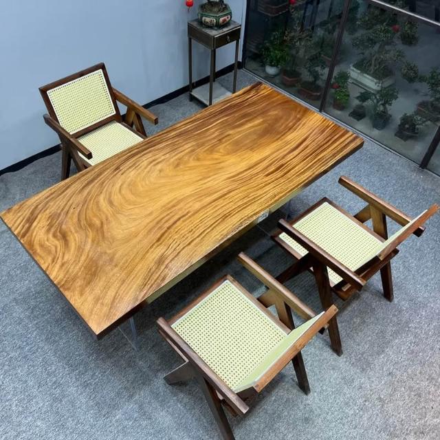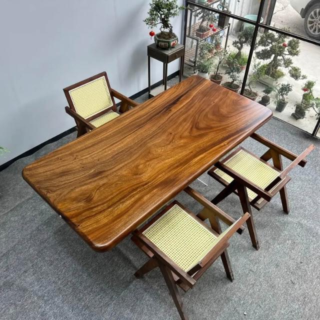 黑胡桃木大板茶桌椅組合實木原木雨木餐桌整板辦公桌現代簡約書桌